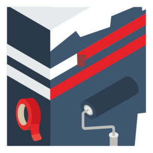 C’est bien sur le procédé le plus utilisé que ce soit pour appliquer de la peinture sur un mur en décoration, ou sur une voiture ou un avion. Les contraintes sont totalement différentes en fonctions des industries ce qui nécessite une large gamme de produit adapté (température, nature de la peinture appliquée soit par pistolet ou au pinceau..), Les adhésifs de masquage papier sont utilisés. Des adhésifs de masquage film peuvent aussi être utilisés notamment pour les applications sur des longues lignes droites. Application : Transport, Bâtiment…